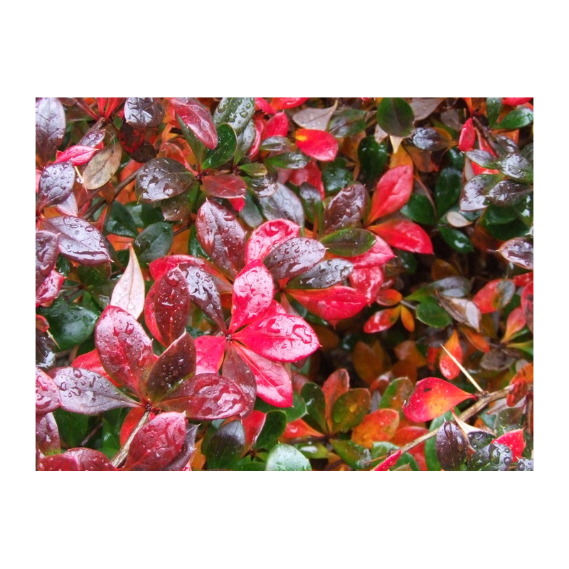 Petit arbuste au port compact, épineux, doté d'un feuillage semi-persistant et luisant en été qui devient pourpre chocolat à reflet presque métallique en automne, parsemé de feuilles rouge vif, qui persistent ainsi la majeure partie de l'hiver.