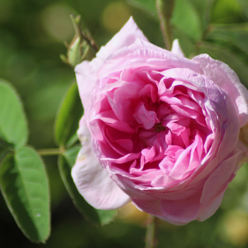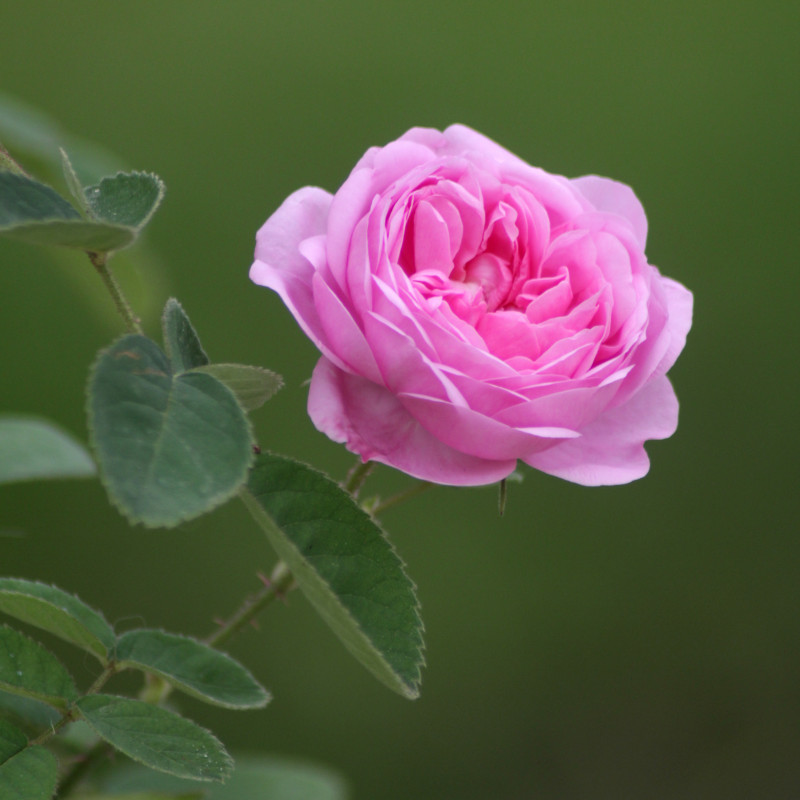 D'un rose à la fois doux et intense, satiné, aux revers des pétales plus "argentés", Prince Charles D'Arenberg est assurément une superbe rose ancienne.