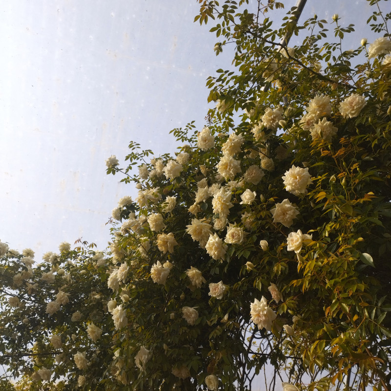 Un rosier d'impressionnante dimension, à la végétation de liane et pouvant aisément mesurer plus de quinze mètres, de large et/ou de haut selon son support!