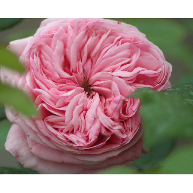 Les fleurs sont très doubles, à la manières des roses anciennes, d'un rose chair très doux.