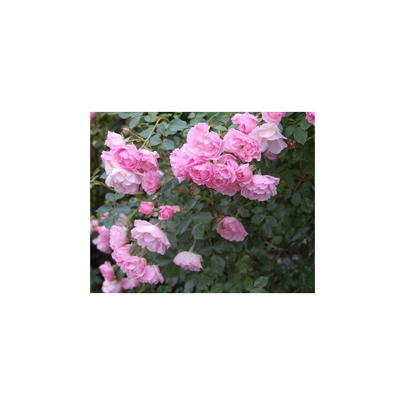 Un feuillage dense et sain, une floraison remontante de fleurs moyennes, doubles, d'un rose doux et légèrement parfumées.