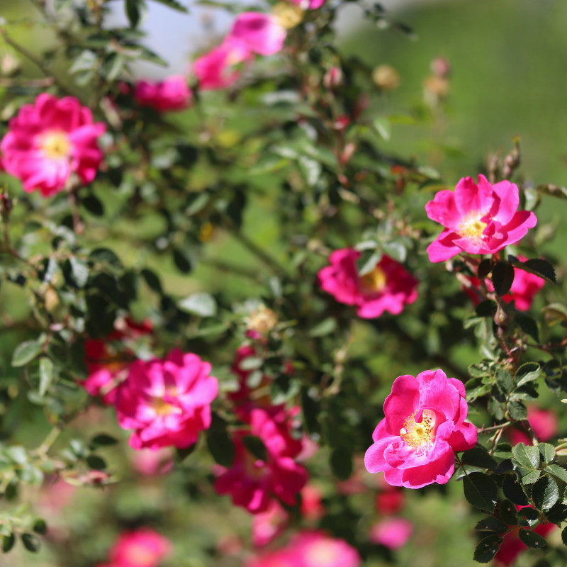 Anne of GeiersteinUn églantier sans entretien aux fleurs rose magenta.