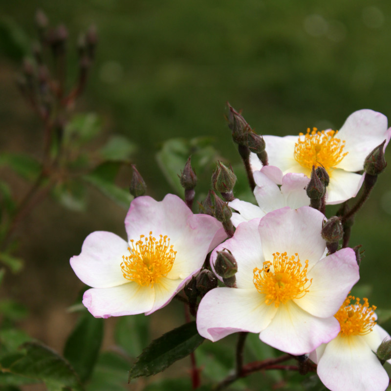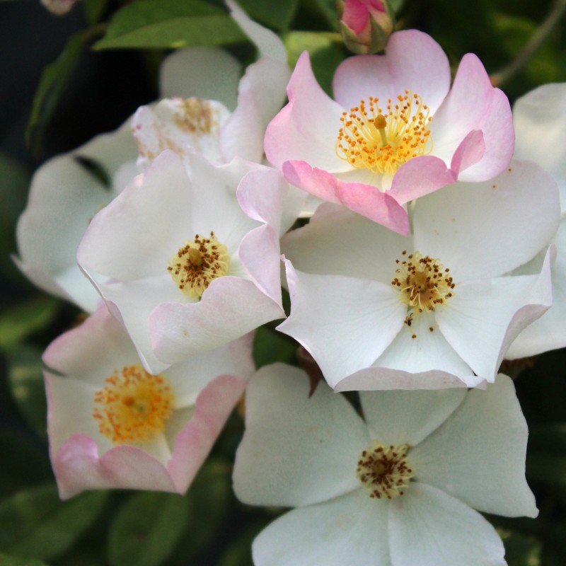 Francis E LesterGrande fleur simple en corymbe lâche, blanc à bord rose fanant blanc. Belles étamines dorées.